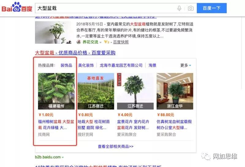 最近,百度推出了其B2B垂直搜索引擎平臺:百度愛采購。如果你細心的話,搜索相關關鍵詞,會在第一頁發現百度愛采購。其主要在搜索頁面結果端,是以商品列表的形式展現出來4個,之后點擊進去就會到達相關的列表頁,可查看更多相關的產品。
